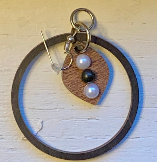 Black wooden circle earring with natural wood accent
