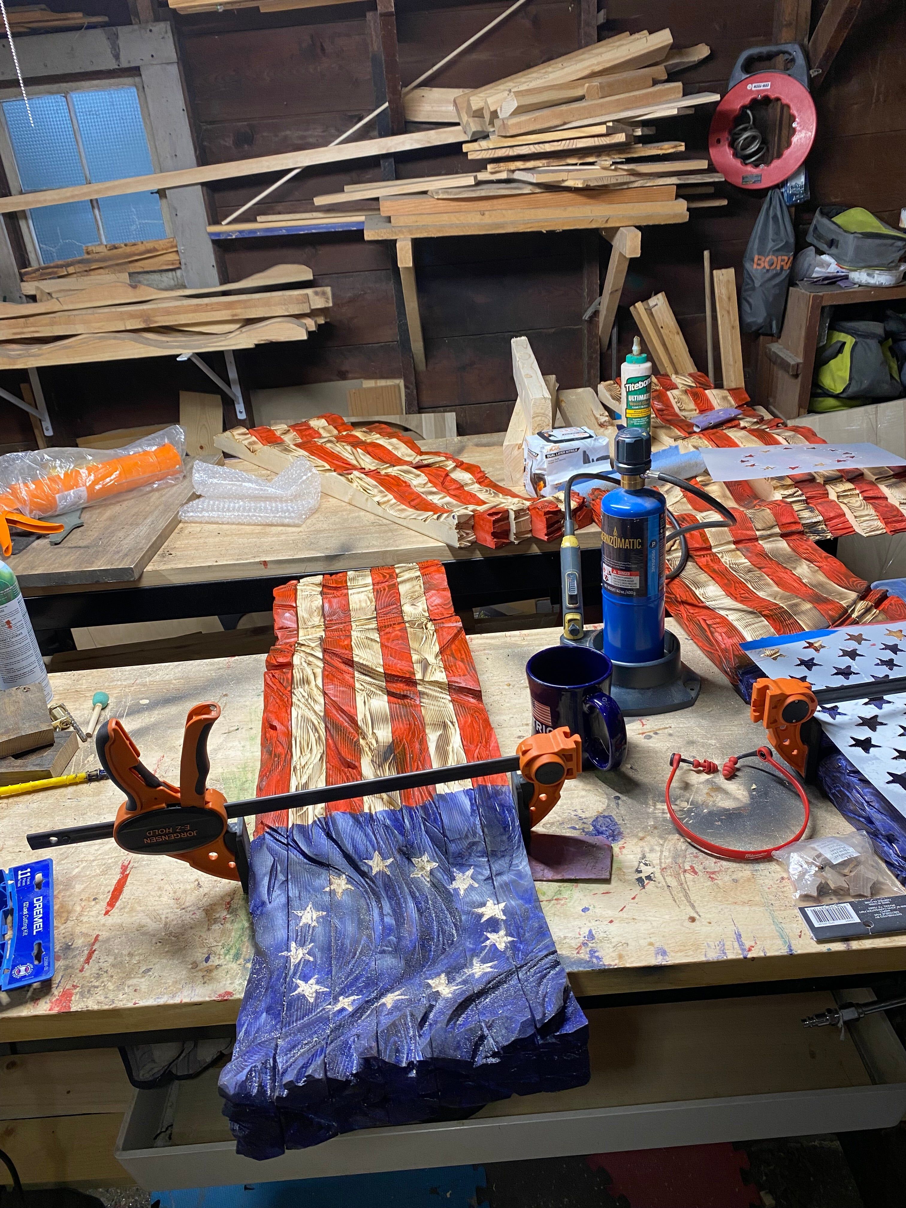 1 handcrafted wooden American flag