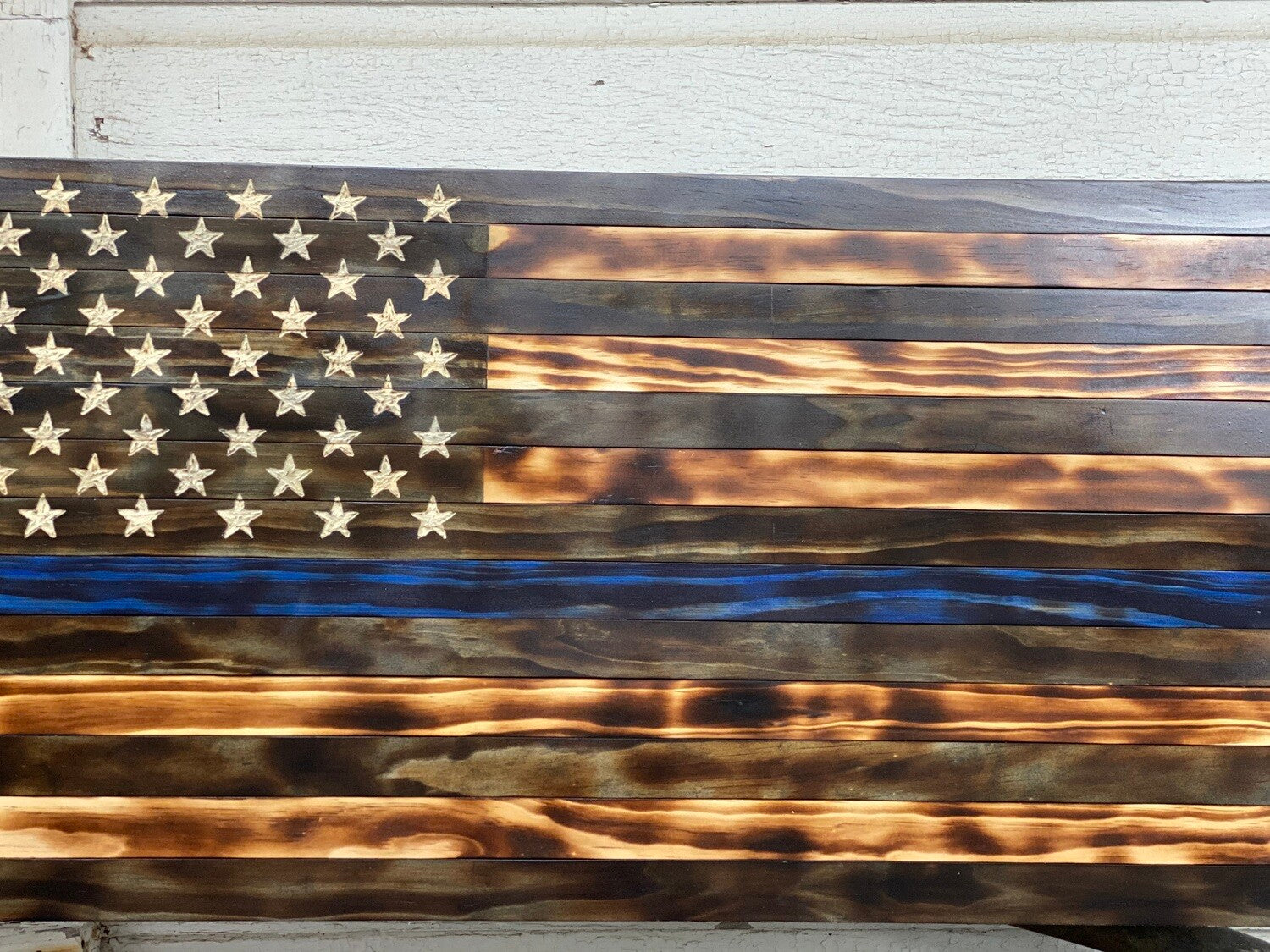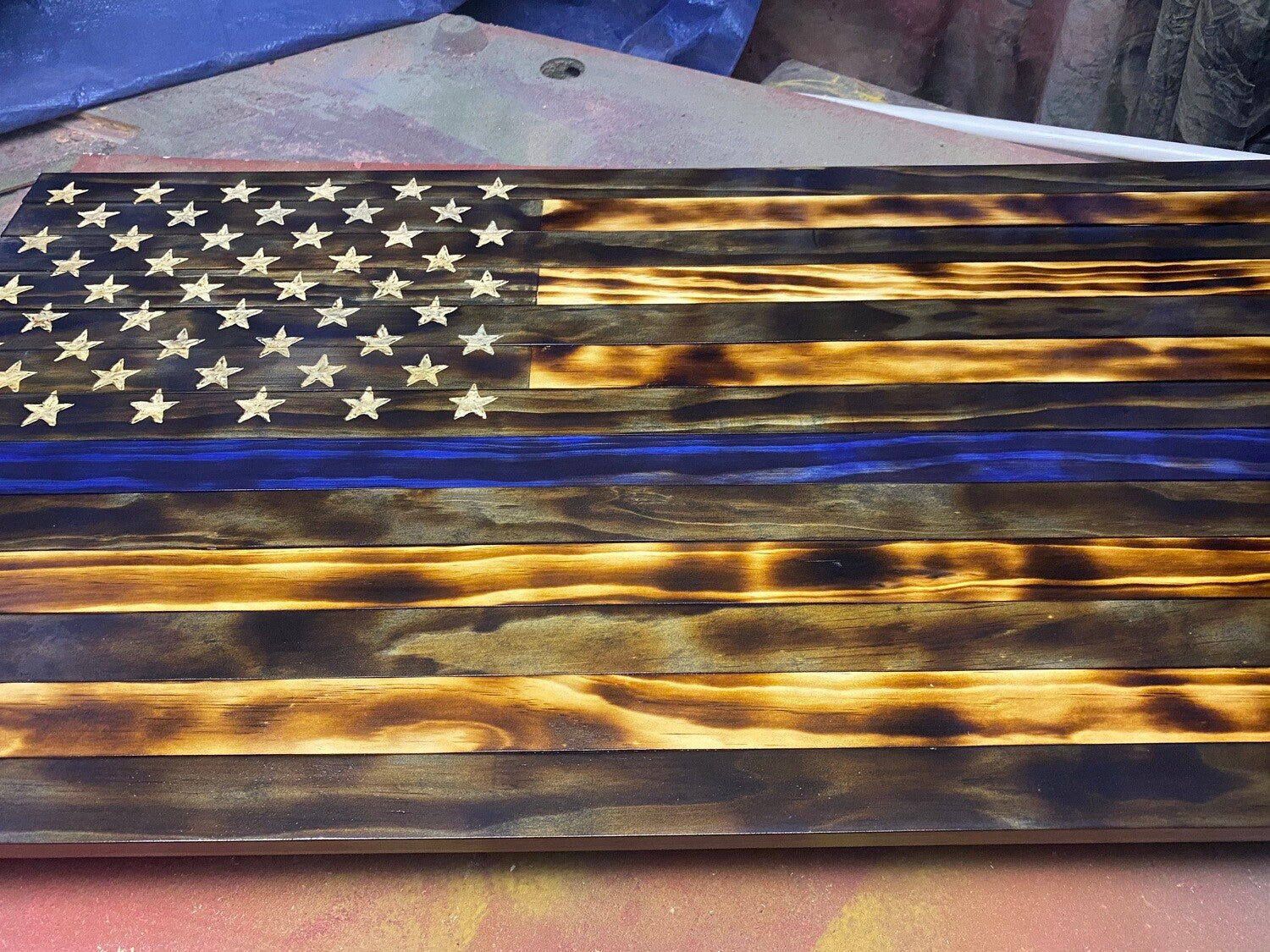 We know you have many options for buying wooden flags and we appreciate that you are buying them from us. We craft the stars by hand to give a unique look to each one of those 50 beauties! The pattern is different on each flag so you have something that is just for you. Our flags are sealed for interior use you can have them made for outside use just select that option at check out. Flag size approximately 19.5"x37”.