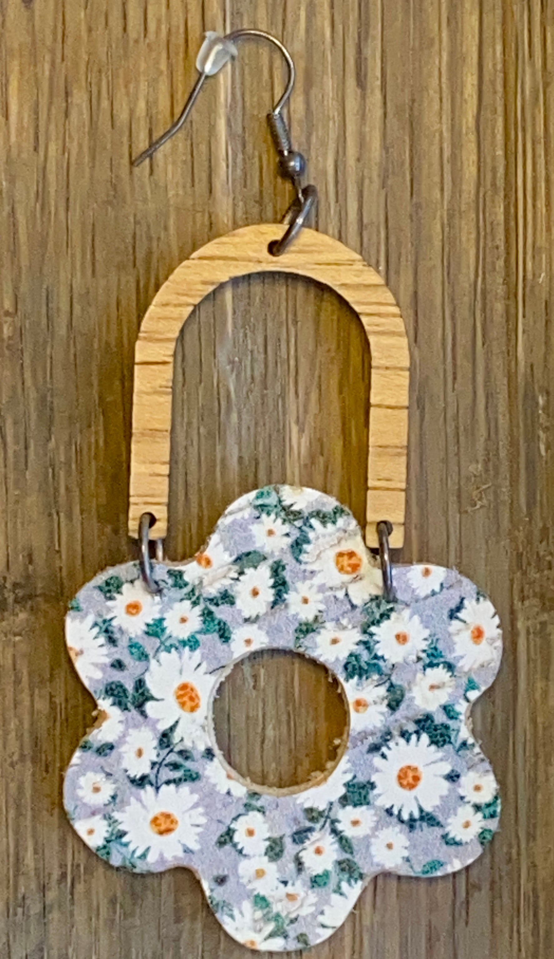 The Tripping on Daisies earrings feature a unique combination of wood and leather, creating a bold and adventurous look. Stand out from the crowd and add a touch of risk to your style with these daisy inspired earrings!